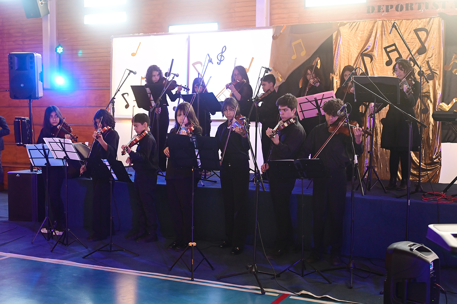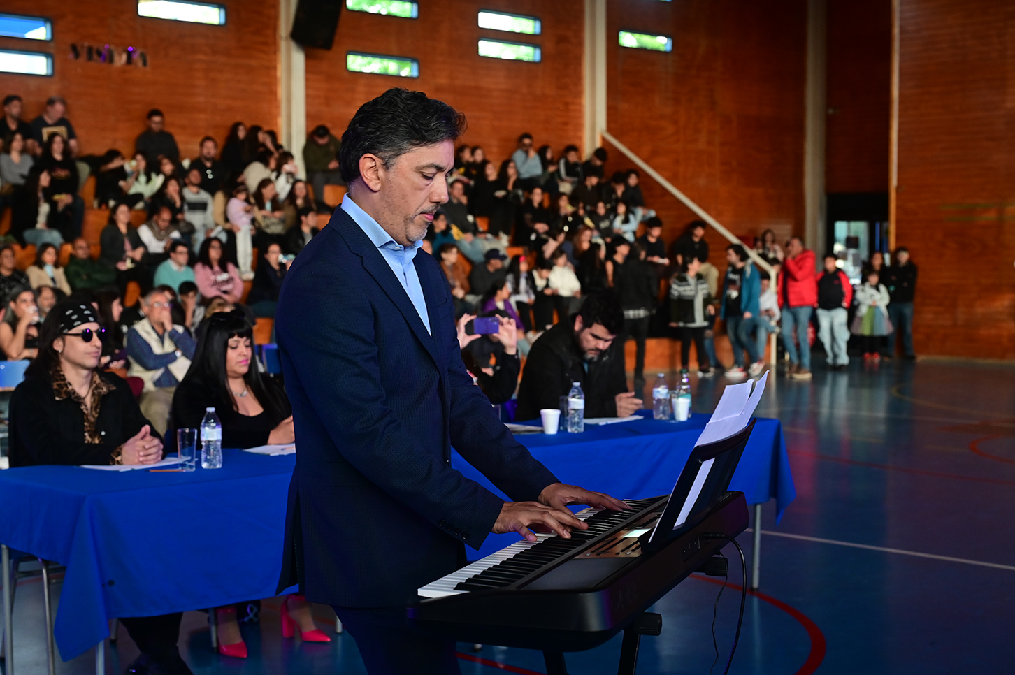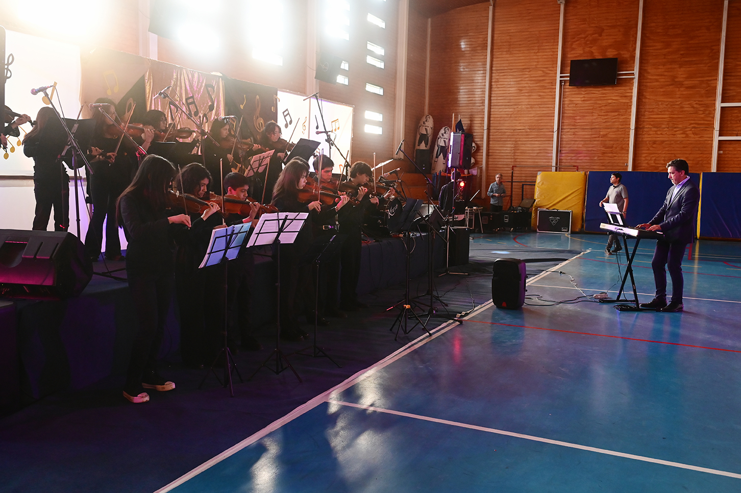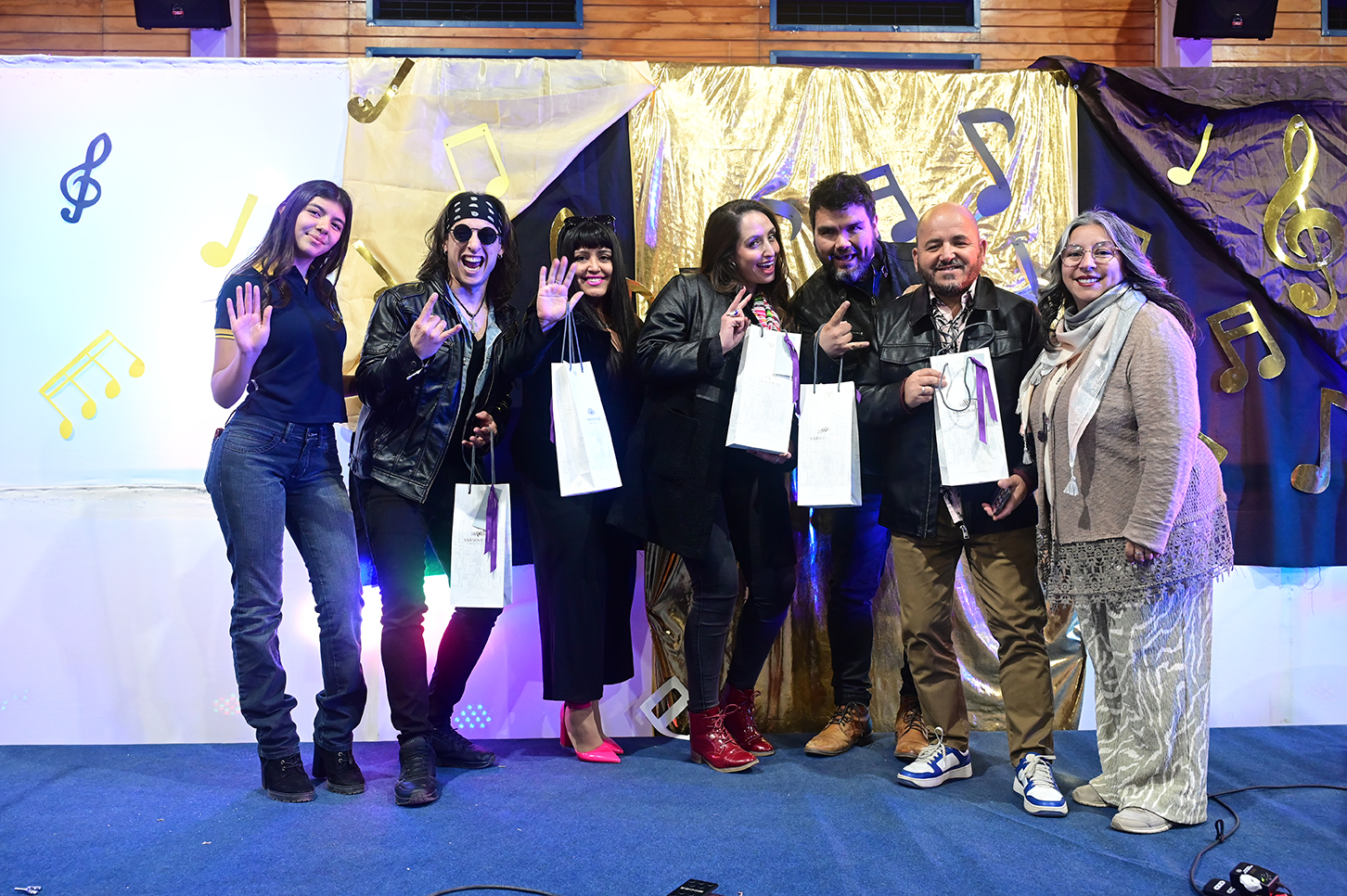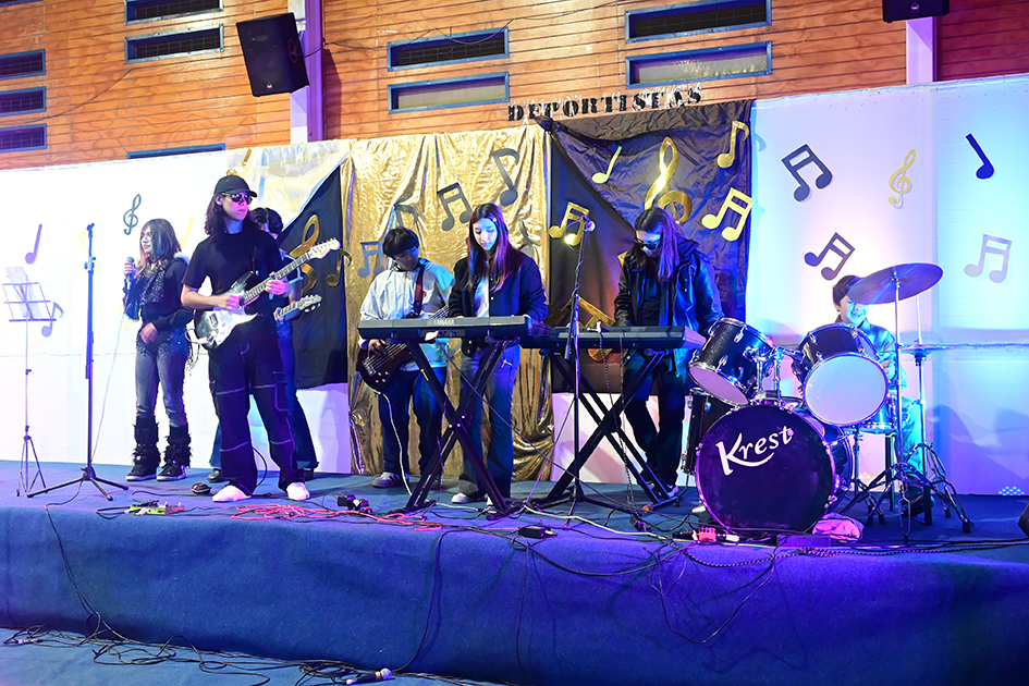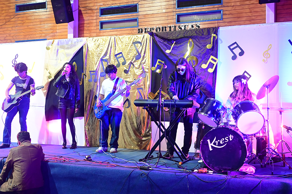 La noche no solo estuvo marcada por la competencia, sino también por presentaciones de alto nivel que deleitaron al público. La velada fue inaugurada por el Taller de Violín y la Orquesta de Cámara, dirigidos por el profesor Juan Cerda. Además, el escenario recibió a artistas invitados como Rockjovi, uno de los jurados, y a la talentosa Banda Instrumental Mayor, quienes hicieron cantar y bailar a todos los presentes.