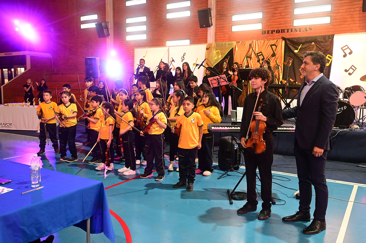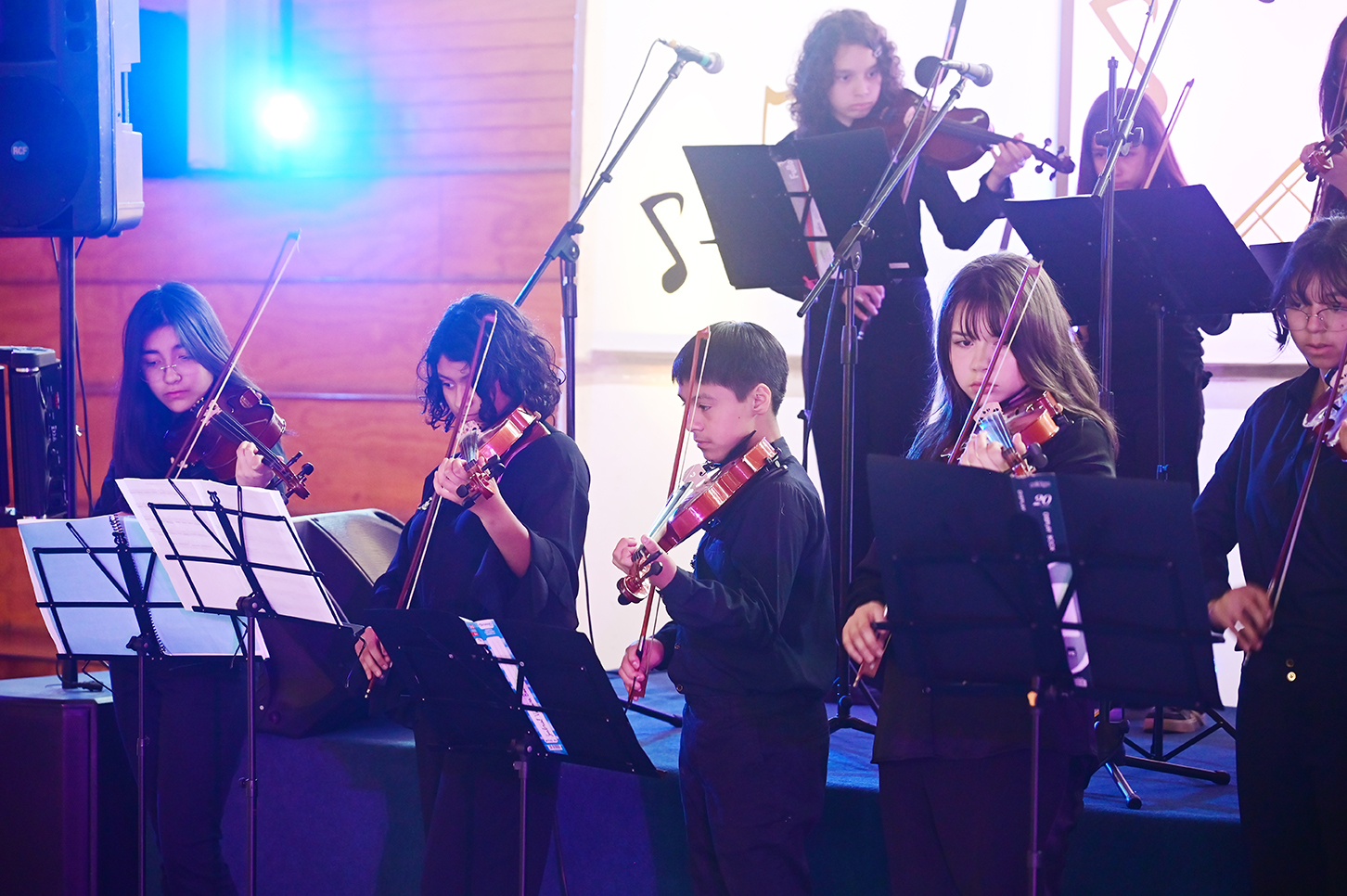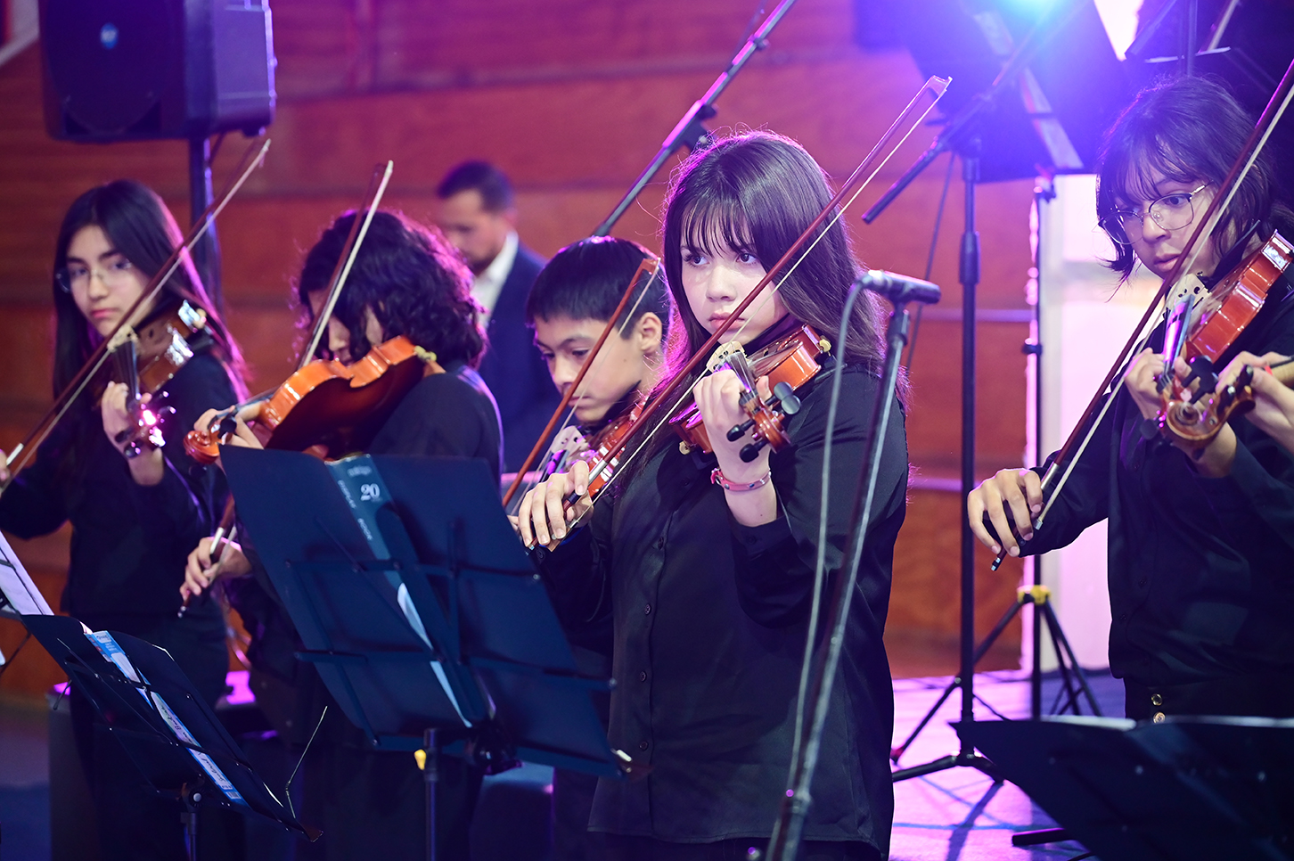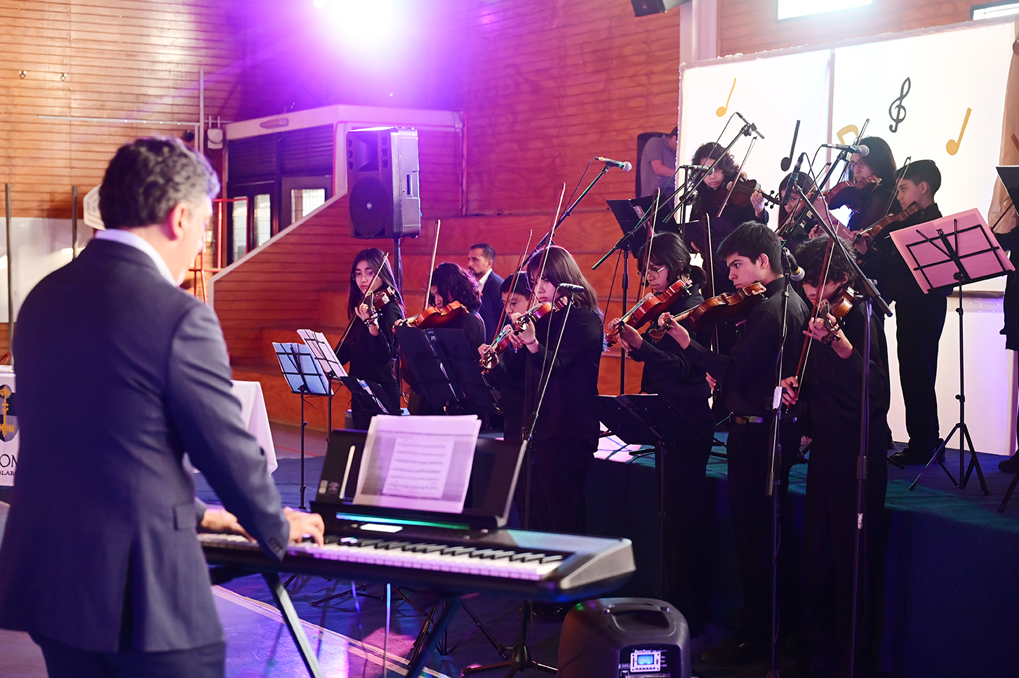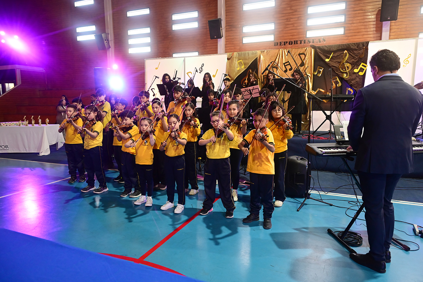 La noche no solo estuvo marcada por la competencia, sino también por presentaciones de alto nivel que deleitaron al público. La velada fue inaugurada por el Taller de Violín y la Orquesta de Cámara, dirigidos por el profesor Juan Cerda. Además, el escenario recibió a artistas invitados como Rockjovi, uno de los jurados, y a la talentosa Banda Instrumental Mayor, quienes hicieron cantar y bailar a todos los presentes.