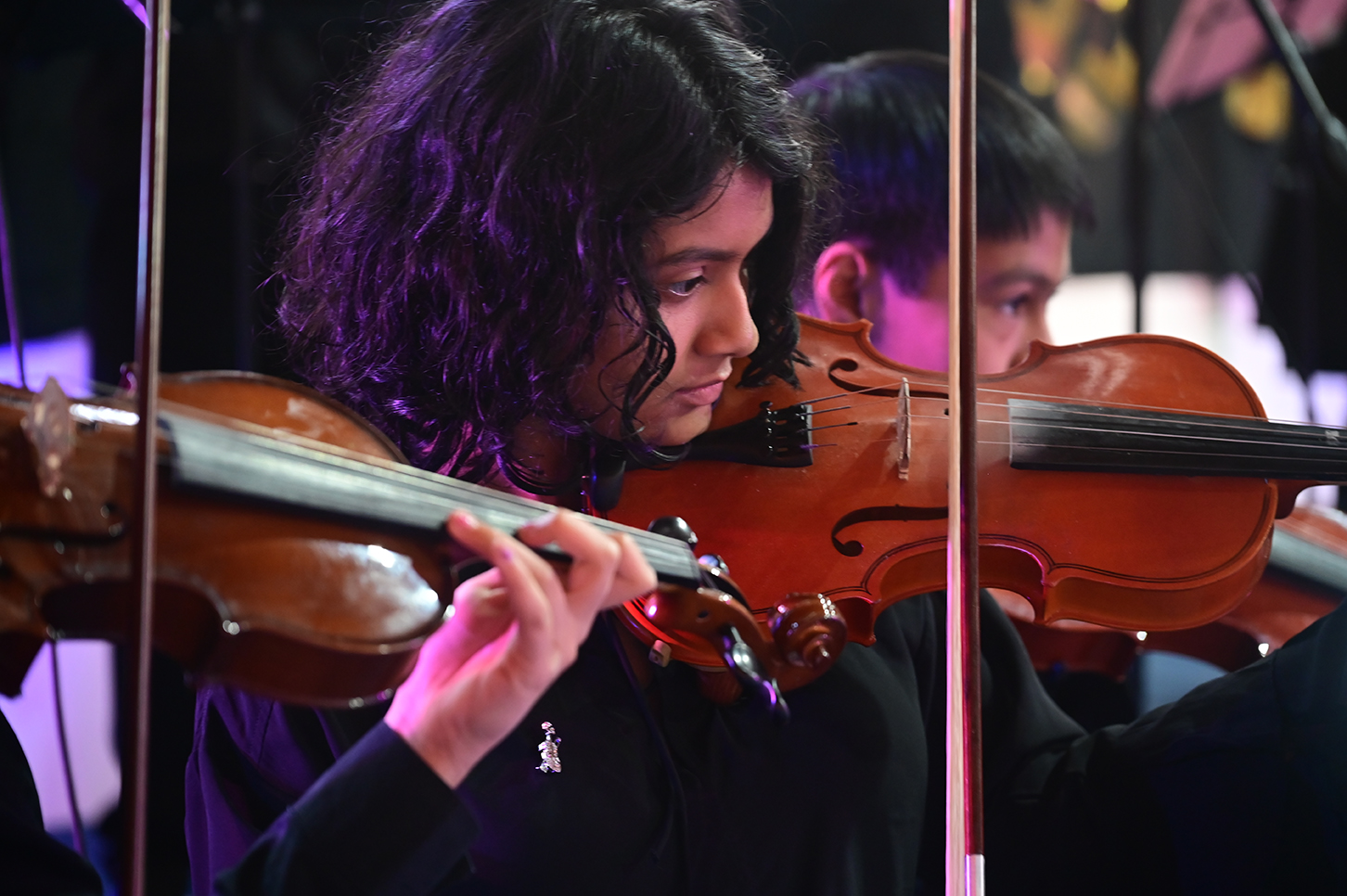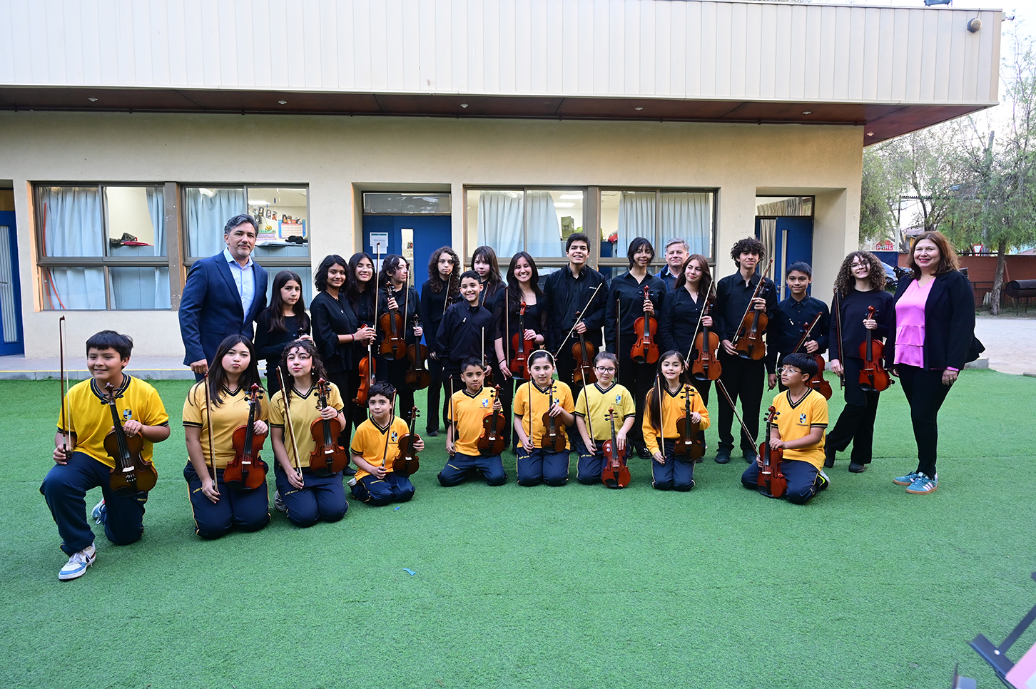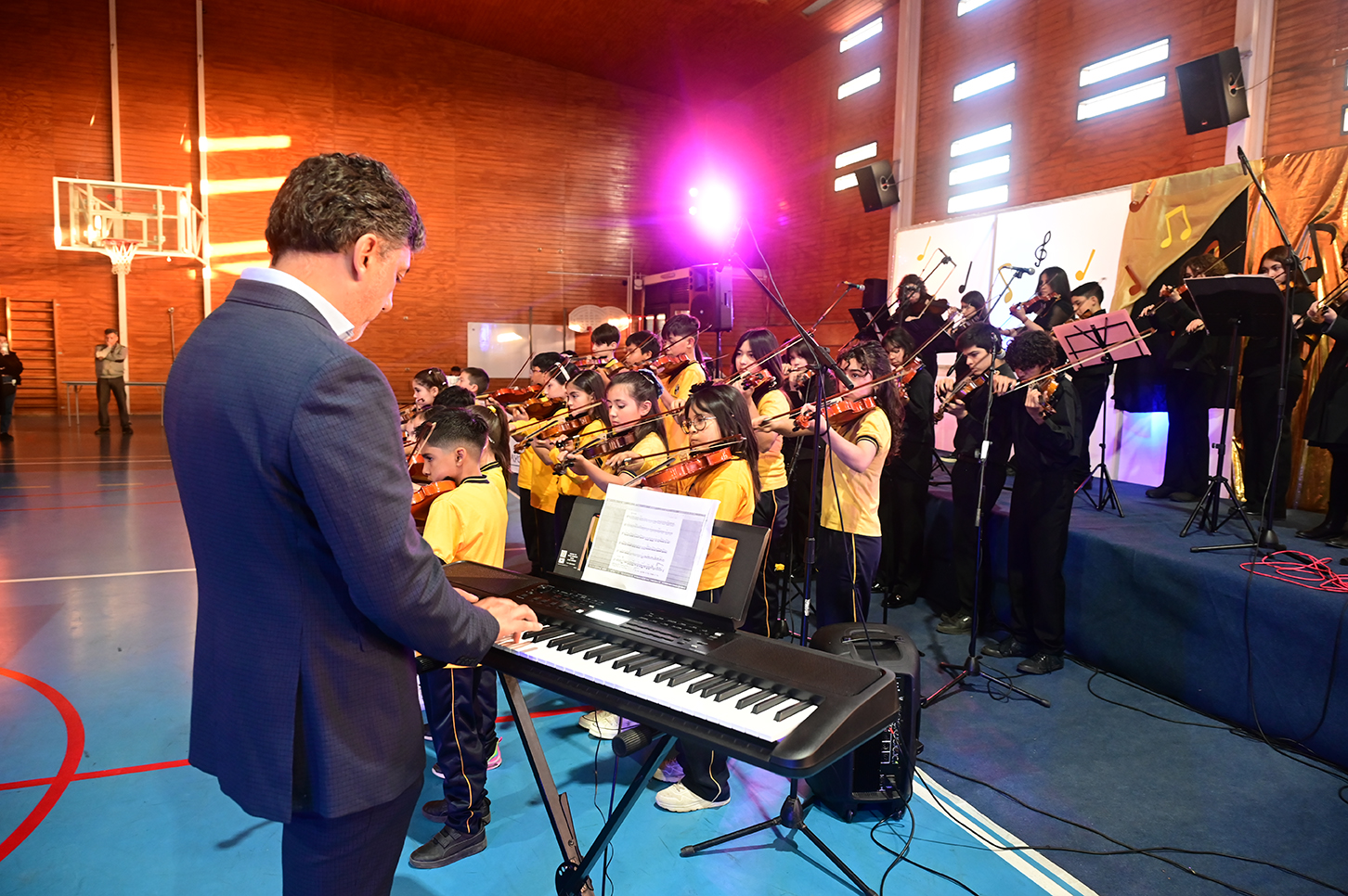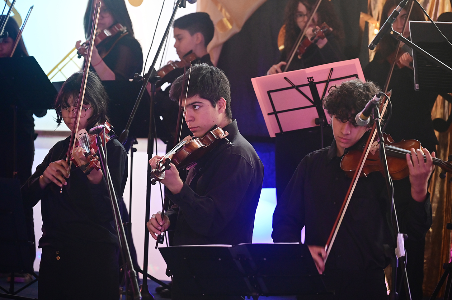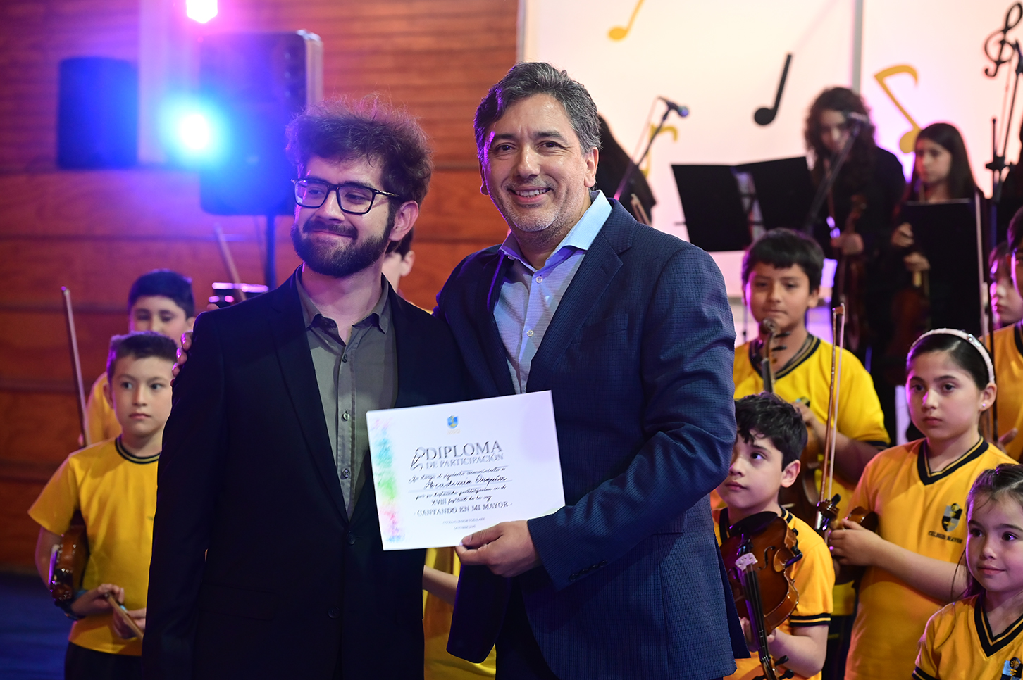 La noche no solo estuvo marcada por la competencia, sino también por presentaciones de alto nivel que deleitaron al público. La velada fue inaugurada por el Taller de Violín y la Orquesta de Cámara, dirigidos por el profesor Juan Cerda. Además, el escenario recibió a artistas invitados como Rockjovi, uno de los jurados, y a la talentosa Banda Instrumental Mayor, quienes hicieron cantar y bailar a todos los presentes.